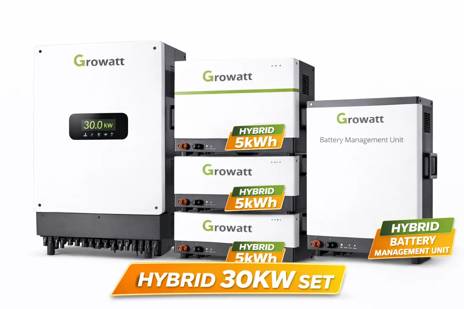 סט היברידי הכולל ממיר – 30 קילוואט / סוללה 10 קוט"ש / יחידת ניהול סוללה/ יחידת גיבוי/ ארון לבוללה/ דונגל תקשורת/מונה חכם ומגען. 5 שנים אחריות עם אפשרות הרחבה ל-10 שנים בתוספת 1880 ש"ח + מע"מ
